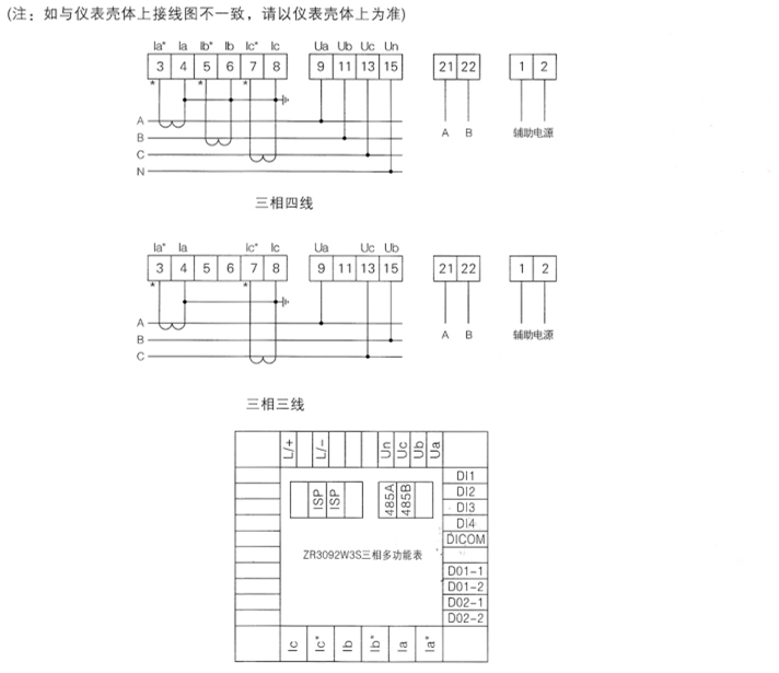 ● 接线方式   三相四线、三相三线