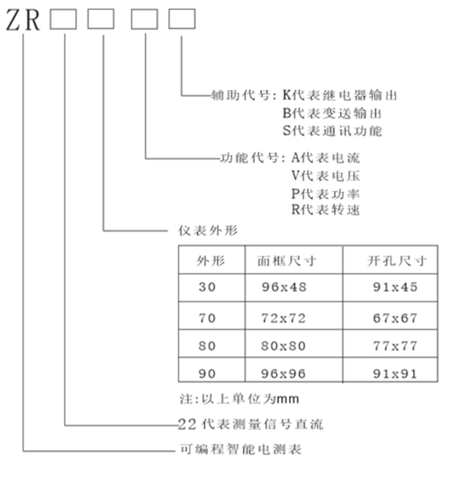概述:ZR22系列直流检测仪表可测量直流系统中的电压、电流、转速等参数。可带RS485通讯接口,采用MODBUS-RTU协议;可带模拟量输出、继电器报警、开关量输入等功能,根据不同要求,通过仪表面板按键可对变比、通讯、开关量输出、开关量输入进行设置与控制。该系列仪表既可用于本地显示,又能与工控设备或计算机等连接,组成测控系统。ZR22系列直流检测仪表适用于直流屏、太阳能发电、电信基站等直流系统的电力参数检测。仪表选型: